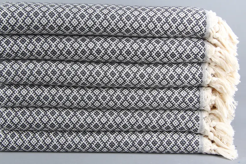 Organik Plaj Havlusu Kişiye Türk Pamuğu, Baklava Desenli, Siyah, 40x71 İnç