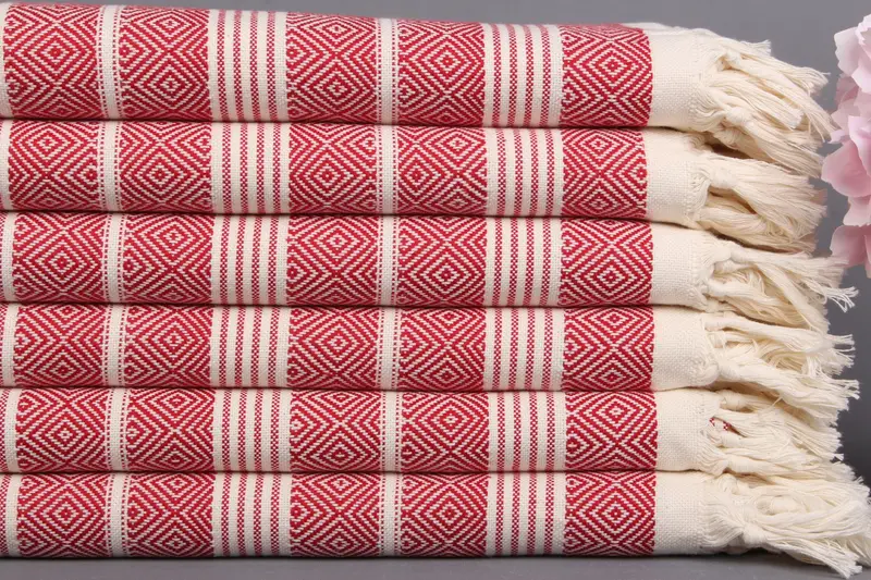 Kişiye Özel Red Diamond Plaj Havlusu İşlemeli, Organik Pamuk, 38x69 İnç