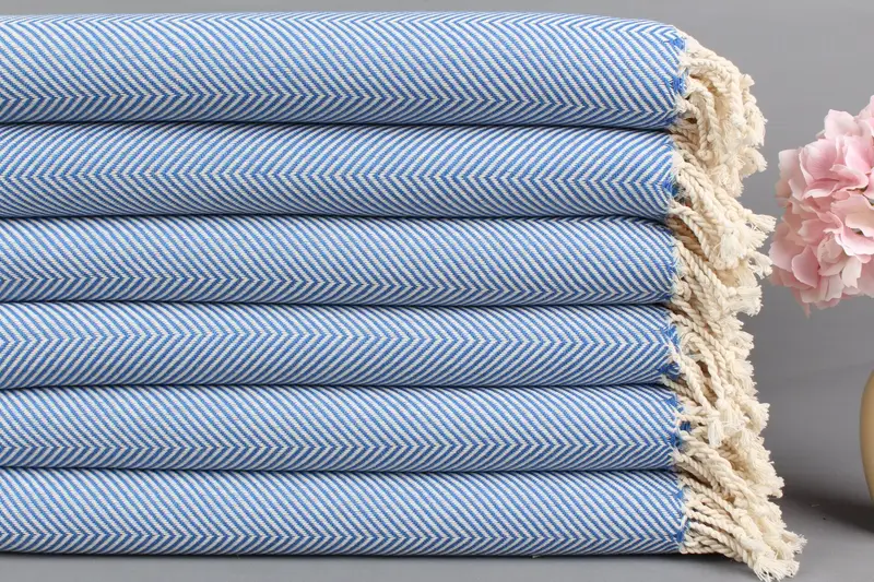 Kişiye Özel Türk Havlusu Petrol Mavisi Chevron Peştemal, 40x71 İnç