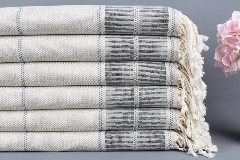 Türk Havlusu Organik Pamuk Koyu Gri-Siyah Çizgili, 40x71 İnç