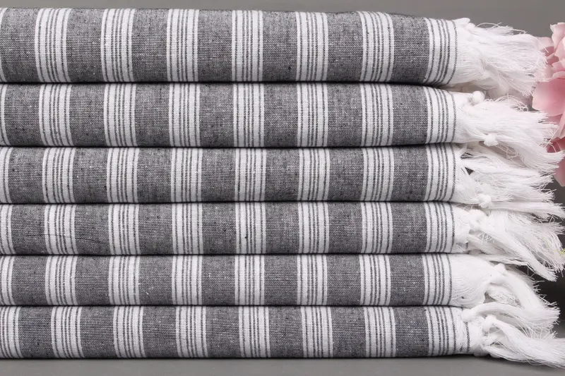 Organik Türk Havlusu Siyah Çizgili, Kişiye Özel, 40x71 İnç