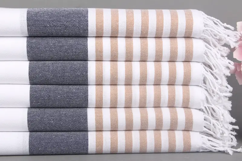 Türk Havlusu Monogramlı Altın-Lacivert Çizgili, Organik Pamuk, 40x71 İnç