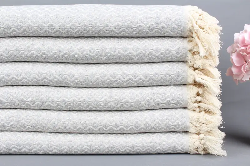Türk Plaj Havlusu Organik Pamuk, Açık Gri, 40x71 İnç
