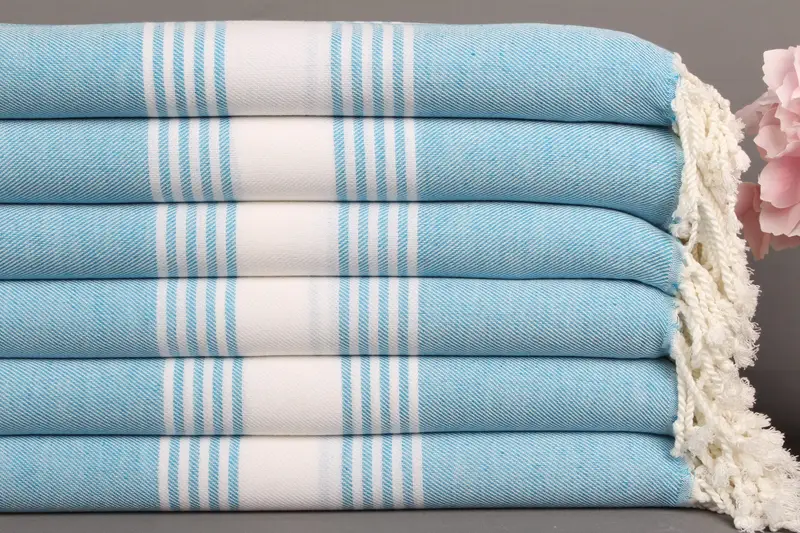 Toptan Türk Banyo Havlusu Turkuaz Çizgili, 38x75 İnç