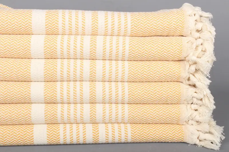 Peştemal Hardallı Pamuk Havlu Çizgili, 40x71 İnç