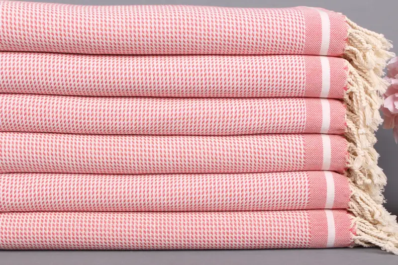 Organik Plaj Havlusu Pembe Şerit, Kişiye Organik Pamuk, 36x71 İnç