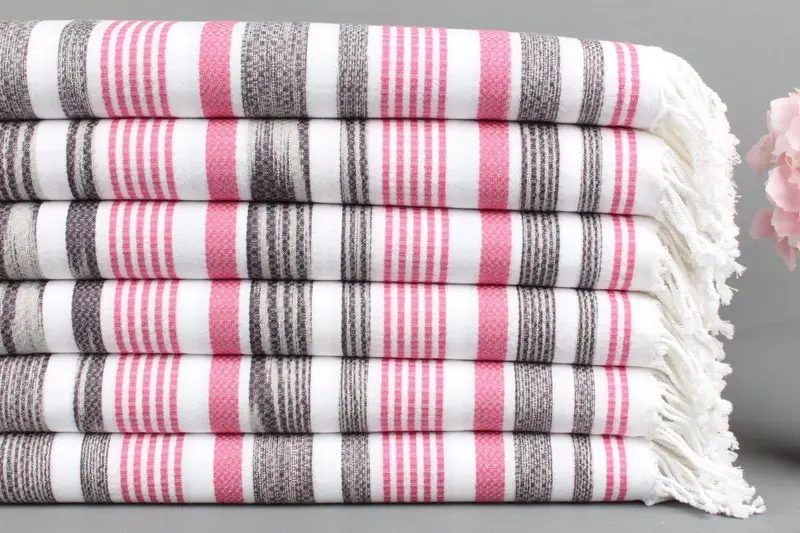 Türk Havlusu Organik Pamuk Koyu Gri-Pembe Çizgili, 40x71 İnç