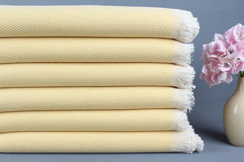 Türk Plaj Havlusu Monogramlı Organik Pamuk Sarı Çizgili, 36x71 İnç