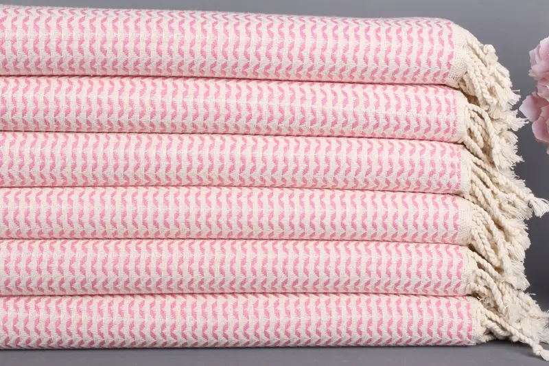 Düğün Hediyesi Pembe Chevron Türk Havlusu Banyo Plajı, 40x71 İnç