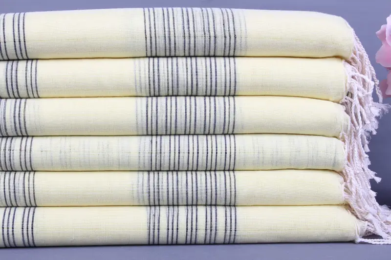 Organik Havlu Parlak Sarı-Siyah Çizgili, 38x71 İnç