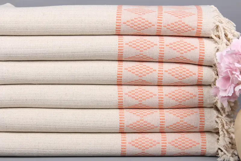 İşlemeli Plaj Havlusu Türk Organik Pamuk Turuncu Kilim, 36x71 İnç