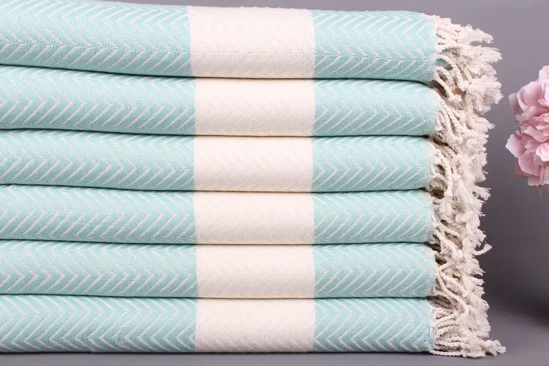 Organik Pamuk Türk Havlusu Mint-Beyaz Chevron Peştemal, 40x71 İnç