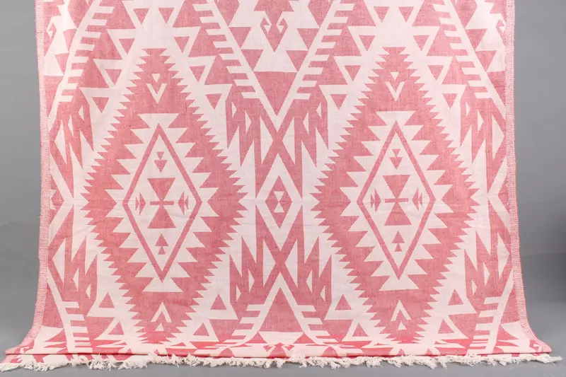 Türk Plaj Havlusu Kırmızı Geometrik, Organik Pamuk, 40x75 İnç