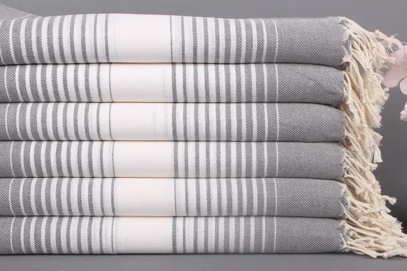 Türk Havlusu Kişiye Özel Plaj Havlusu Koyu Gri Çizgili, 40x67 İnç