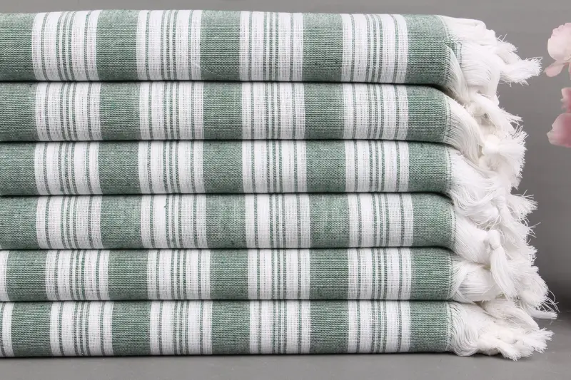 Toptan Koyu Yeşil Çizgili Türk Havlusu, Kişiye Özel, 40x71 İnç
