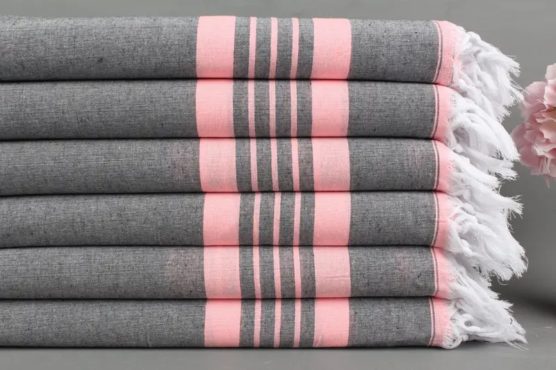 Organik Pamuk Plaj Havlusu Siyah-Parlak Pembe Çizgili, 40x71 İnç