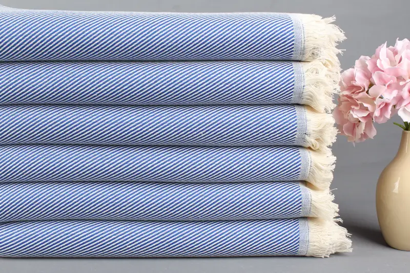 Kişiye Özel Türk Havlusu, Saks Mavisi, Çizgili, 36x71 İnç