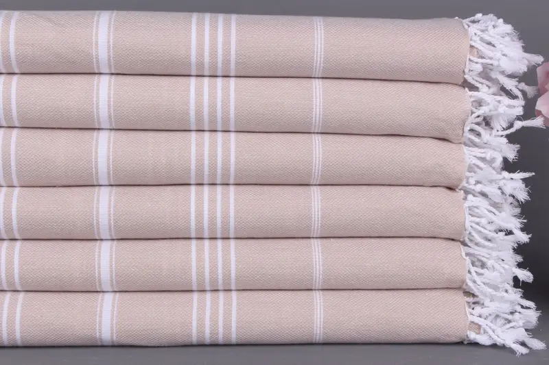Düğün Hediyeleri Özel Bej Çizgili Havlu 40x71 İnç