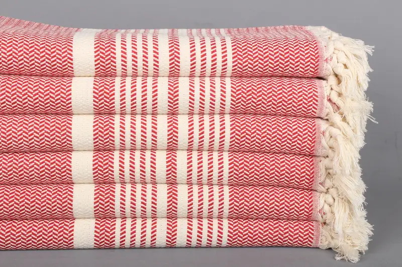 Kırmızı Pamuk Havlu Çizgili Türk Havlusu Plaj Havlusu, 40x71 İnç