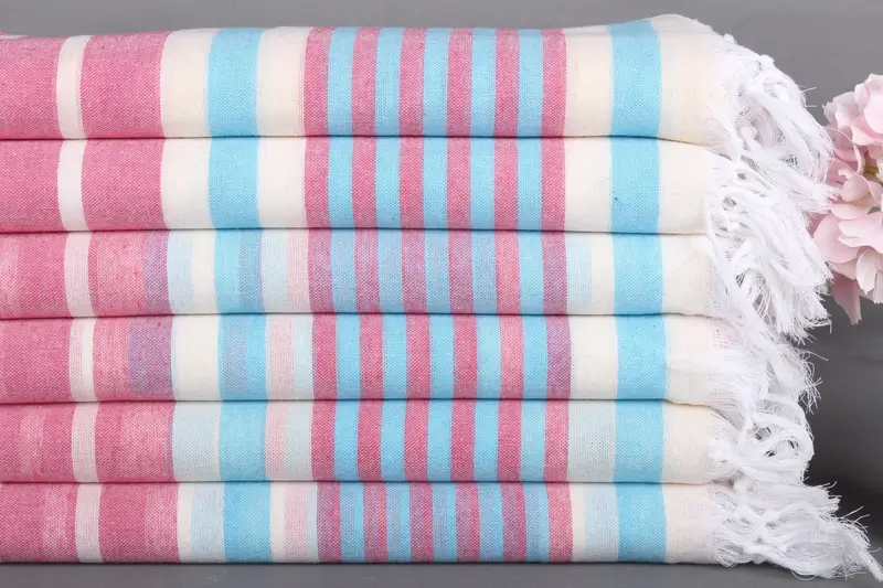 Ev İçin Hediye, Çizgili Havlu, Pembe-Turkuaz Pamuk Plaj Havlusu, 40x67 İnç