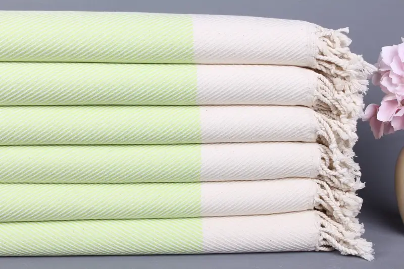 Kişiye Özel Fıstık Yeşili Çizgili Türk Hamam Havlusu, 40x71 İnç