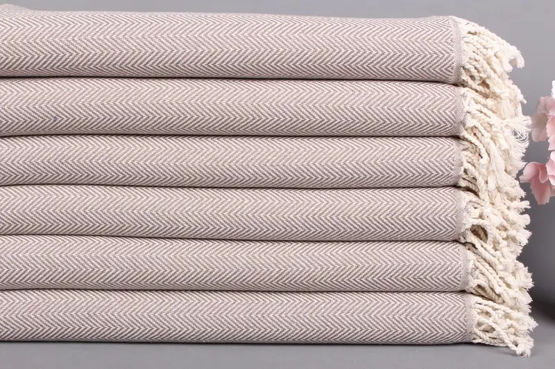 Türk Plaj Havlusu Organik Pamuk Kahverengi Balıksırtı, 40x71 İnç