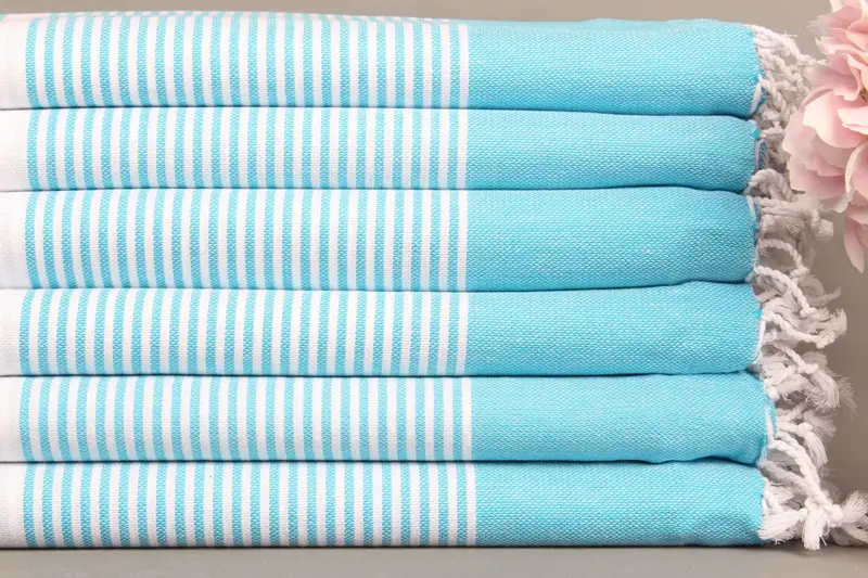 Monogramlı Türk Plaj Havlusu Turkuaz Çizgili, 40x71 İnç