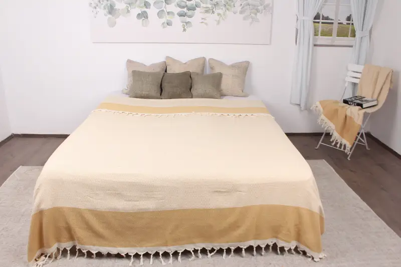 Türk Battaniyesi Organik Pamuk Hardal Elmas, 79x103 İnç