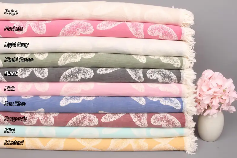 Kelebek Desenli Battaniye, Nakışlı Pamuk, Bej, Kamuflaj, 79x95 İnç