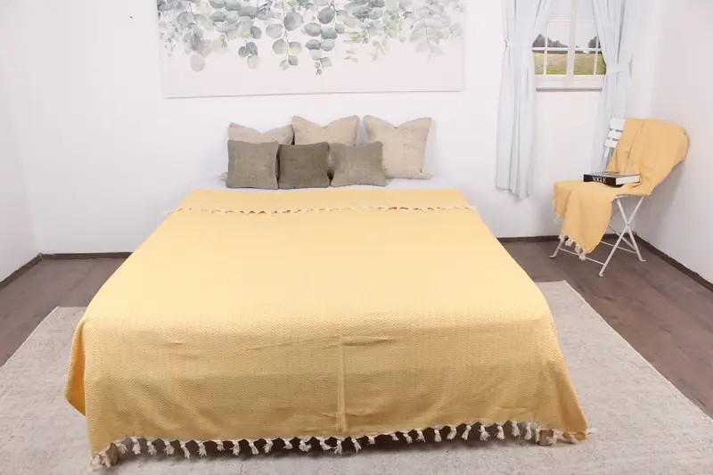Piknik Hardalı Chevron Atkı Organik Pamuk, 75x91 İnç