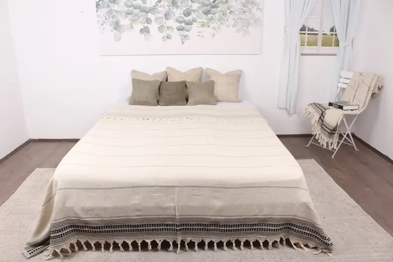 Plaj Battaniyesi Türk Donanması Keten Şal, Organik Pamuk, 93x95 İnç