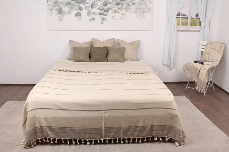 Yatak Örtüsü Ev Dekorasyonu Kahverengi Çizgili Keten Koltuk Takımı, 95x103 İnç