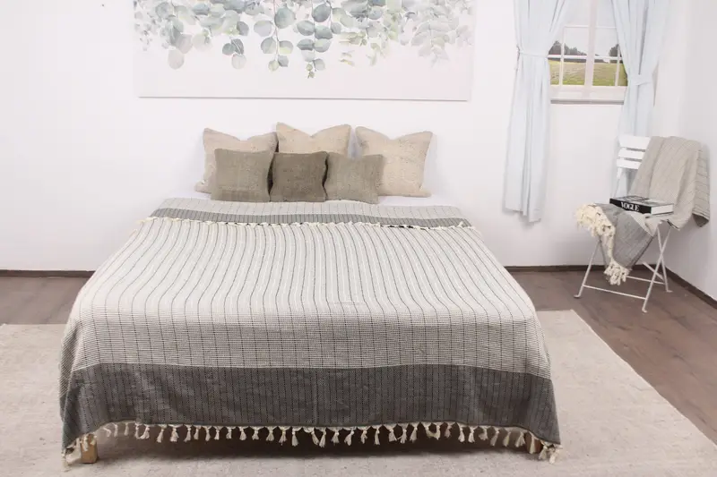 Piknik Battaniyesi Organik Pamuk Siyah Elmas Örtü, 71x79 İnç