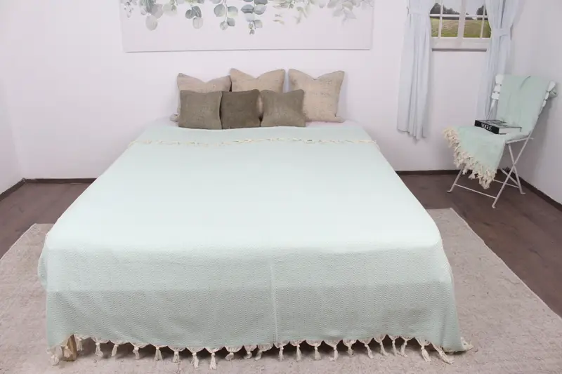El Dokuma Türk Battaniyesi Nane Şal, Chevron Desen, 75x91 İnç