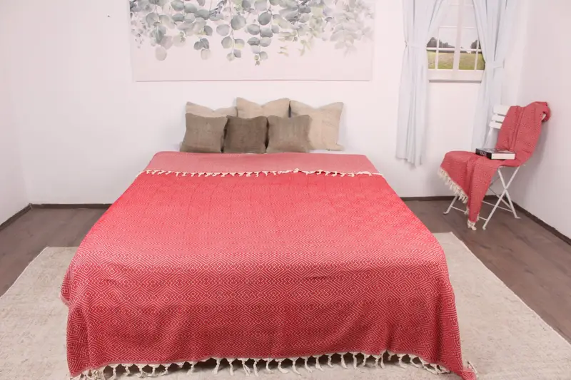Kanepe Battaniyesi El Dokuma Kırmızı Atma Elmas Organik Pamuk 79x91 İnç