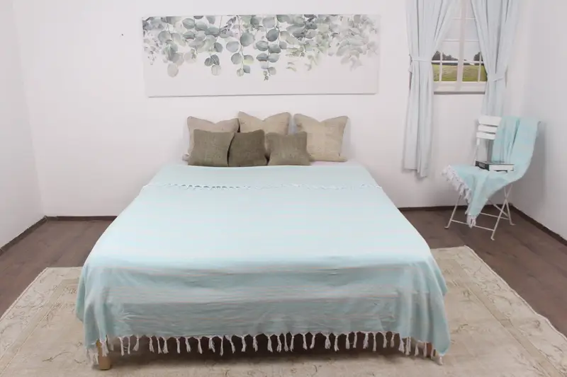 Türk Battaniye Nane İşlemeli Çizgili, Organik Pamuk, 71x95 İnç
