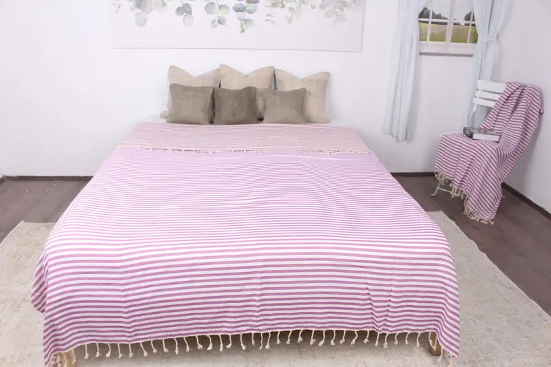 Türk Battaniyesi Organik Pamuk Mor Bej Chevron Örtü, 75x103 İnç