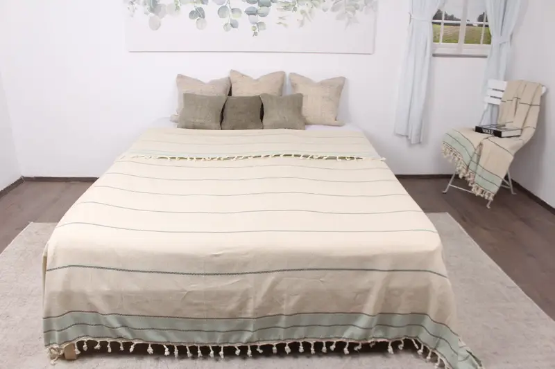 Türk Yatak Örtüsü Piknik Battaniyesi Nane Çizgili Atma 95x103 İnç