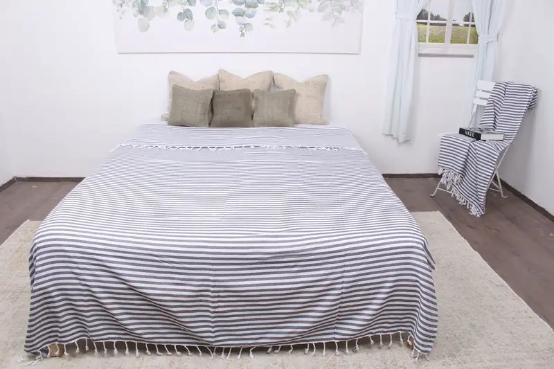 Koyu Gri Organik Pamuklu Piknik Battaniyesi, Chevron Örtü, 75x103 İnç