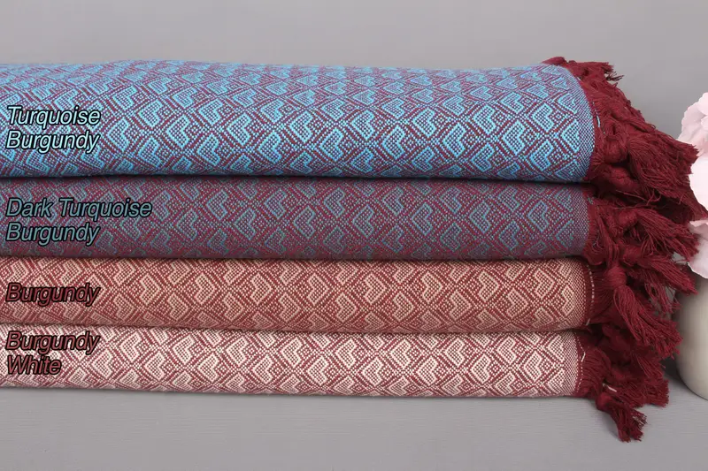 Türk Organik Pamuk Atmalı Kalp Desenli Battaniye Bej, 75x87 İnç