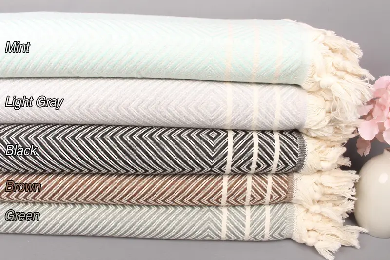 Türk Battaniyesi Pamuk Atma Organik Bej Şerit, 71x95 İnç