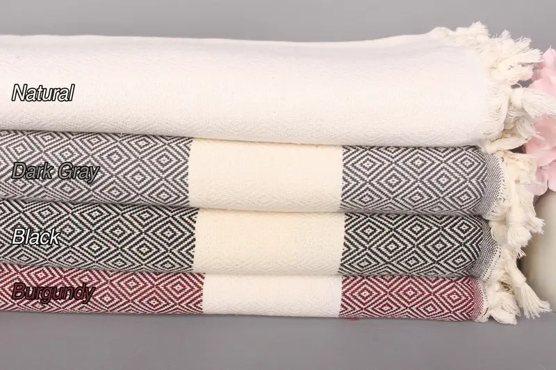 Türk Battaniye Örtüsü Organik Pamuk Bordürlü Bej, 95x79 İnç