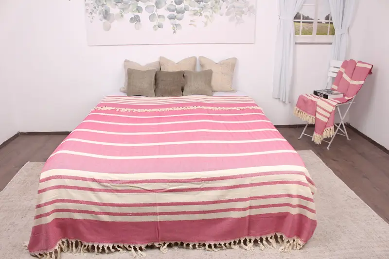 Kanepe Örtüsü Organik Pamuk Fuşya Chevron Battaniye, 79x95 İnç