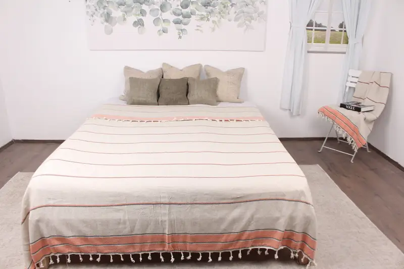 Büyük Türk Havlusu Turuncu Bej Çizgili, 95x103 İnç