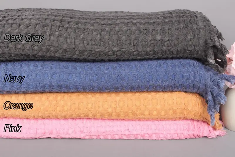 Masa Örtüsü Waffle Battaniye Pamuk Bej Bordürlü, 79x103 İnç