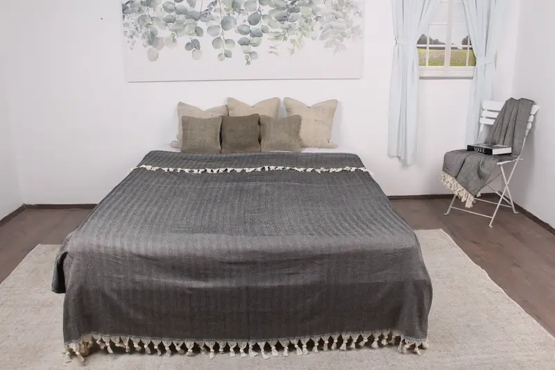 Türk Atma Battaniyesi El Dokuma Organik Pamuk Siyah Balıksırtı, 79x99 İnç