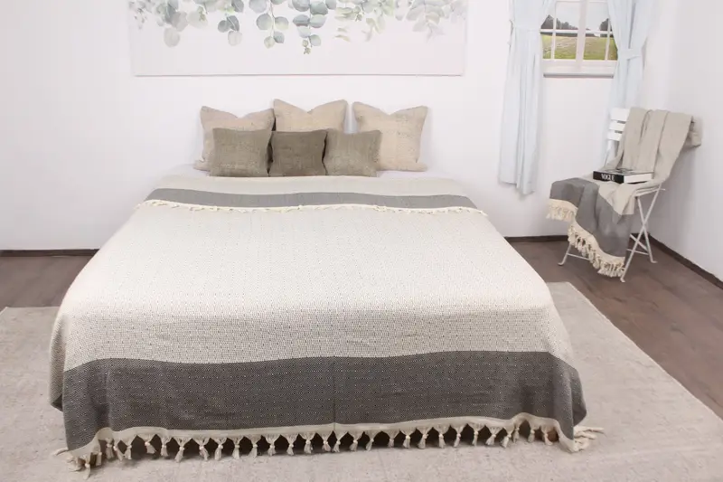 Türk Battaniyesi Organik Pamuk Siyah Elmas Örtü, 79x103 İnç
