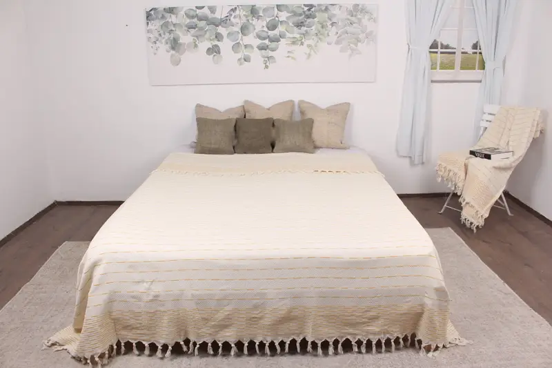 Türk Battaniyesi Organik Pamuk Bej Çizgili, 91x97 İnç