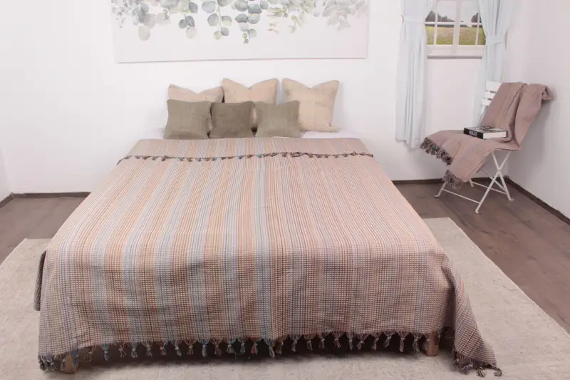Toptan Açık Bej Elmas Atmalı Pamuklu Battaniye 87x91 İnç