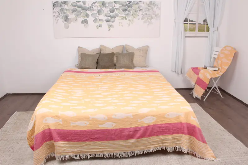 Türk Battaniyesi Özel Organik Pamuk Turuncu-Fuşya Hayvan Baskı, 77x91 İnç